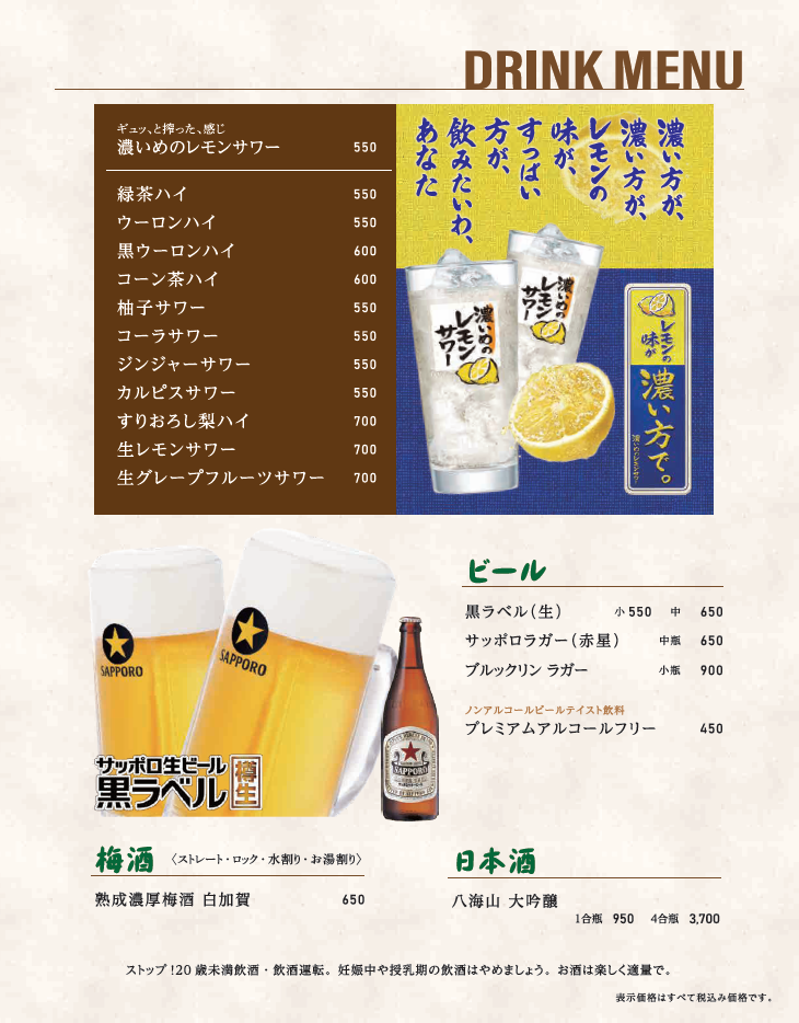 ※ウイスキーはロック、水割りでもご注文いただけます。